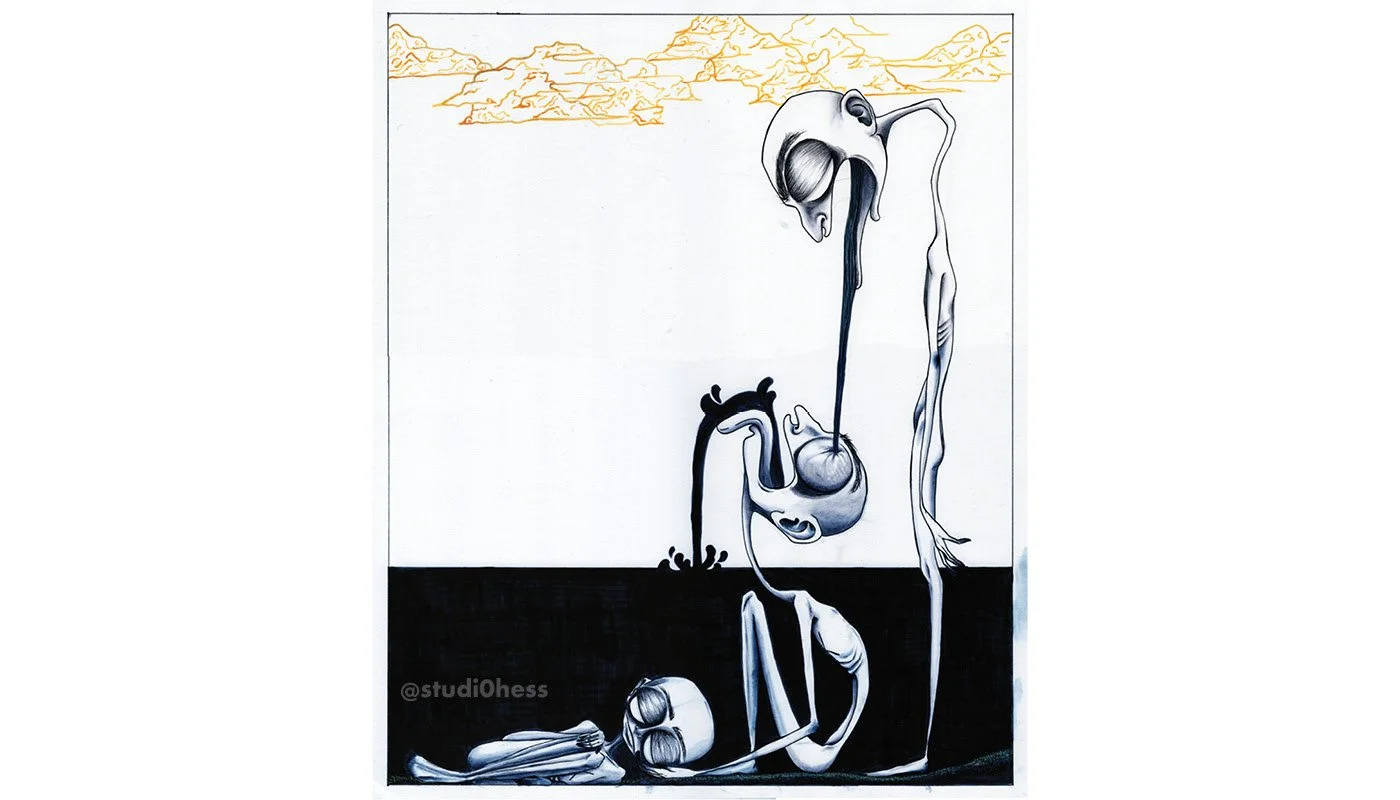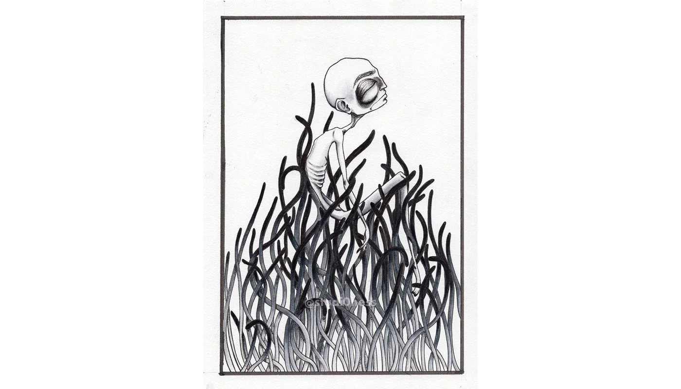 Pen and ink on mixed media paper